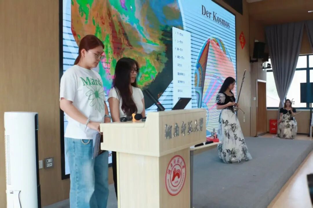 To stand in a significant academic event, surrounded by professors and experts, and use the German I’ve learned to express my exploration and reflection on the boundaries of the universe, individual existence, and the human soul, was an incredible experience for me. The few minutes of recitation on stage were built upon countless rehearsals with my classmates offstage, and it encapsulated the essence of five thousand years of excellent Chinese traditional culture, as well as the hospitality of the great Eastern nation symbolized by the city of Changsha. An Erhu performance further connected China’s grand history with the philosophical inquiries of a German novel, creating an invisible bridge between foreign cultures. After the performance, experts praised our efforts. Although I did not feel I made a huge contribution, this is what the German major has given me—the ability to create bigger ripples than a small stone, which is a profound and silent sense of achievement and emotion.